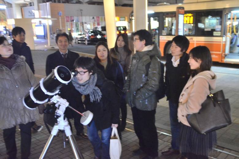 駅前で気軽に望遠鏡をのぞいて帰れます。月に一度、知的な夜をいかがですか?