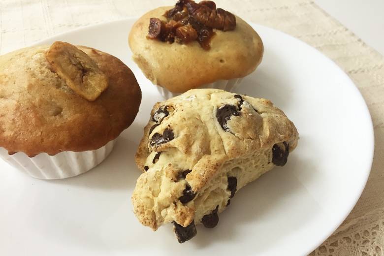 左・右上:お豆腐マフィン各¥264。右下:豆乳スコーン(チョコチップ)¥237。