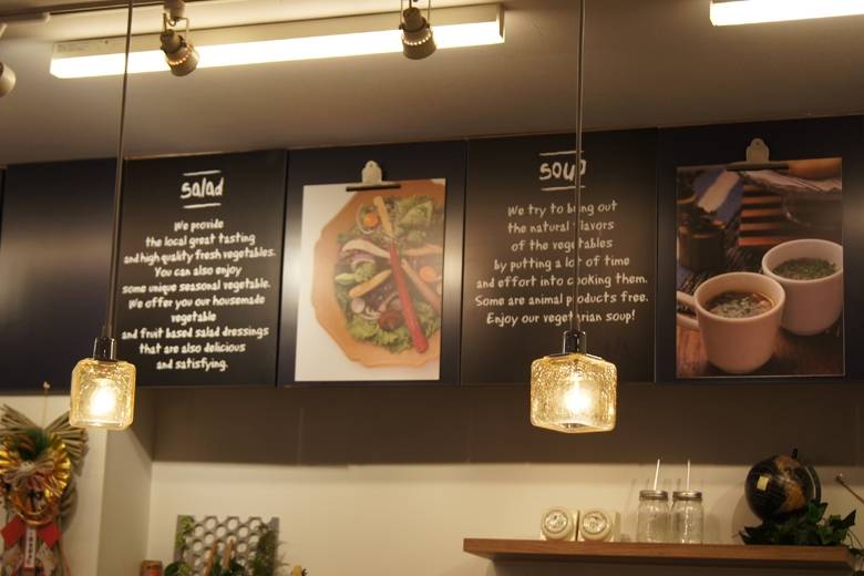 ヴィーガン向けのランチメニューはグリル野菜のピザ、フレッシュ野菜のピザ、カレーなどいろいろと揃っていました。この日はお店の方おすすめの野菜たっぷりのランチプレート(¥1,000)を注文。食材はできる限り、無添加・低農薬・オーガニックのものを選んでいるというだけあり、野菜そのもののおいしさを味わうことができました。