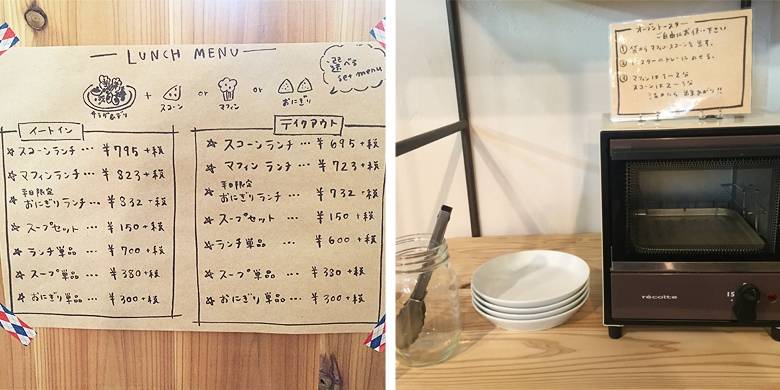 今日は食べられなかったランチですが、日替わりのサラダデリにスコーンかマフィンかおにぎりが選べます。スープセットも、単品でも!スコーンはト―ス―ターでかりっとさせるのがおすすめとのこと。