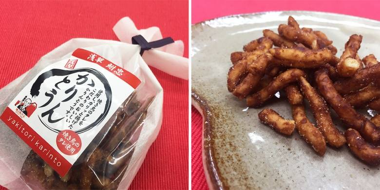 お店でみつけたこちらの鮒忠オリジナルかりんとう。焼き鳥のたれが使用されているようです。たれの味はそこまで感じないので、甘いかりんとうとしていただけましたが、たれの効果かあとをひくおいしさで、ビールが飲みたくなりました。