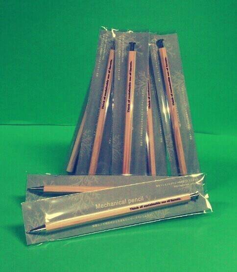 間伐材を通じて適切な森林管理である「木を切る環境保全」を広めることを目的として製作された「シャープペンシル」。