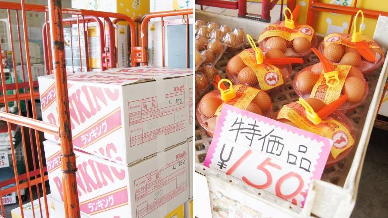 箱での販売(写真左)や特価品の販売(写真右)も。