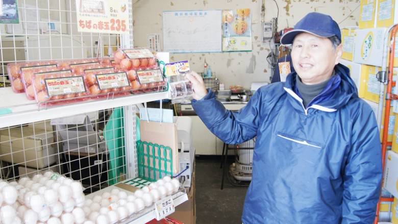 「(株)フレッシュ鶏卵」は、茨城県や千葉県の近隣にある提携養鶏場から仕入れているので、まさに新鮮な卵を扱っています。「ミスターイエロー」「ちばの赤玉」「情熱のたまご」などのこだわりブランドから、マヨネーズなどのオリジナル商品も販売されていました。くんせい卵や温泉卵の受注発注もしてくれるみたいです。