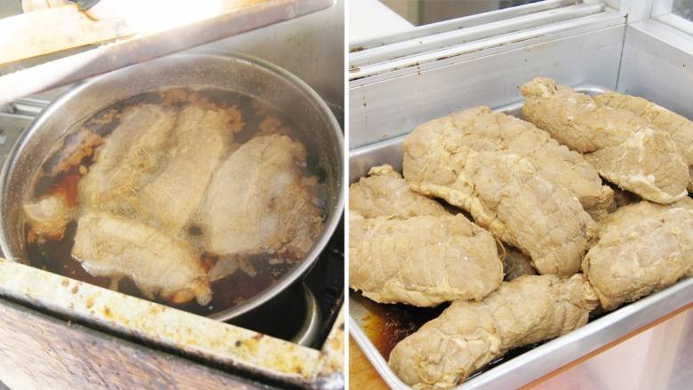 「クボタヤ食肉」では年季の入った鍋でチャーシューを作っていました。この匂いはずるい!
