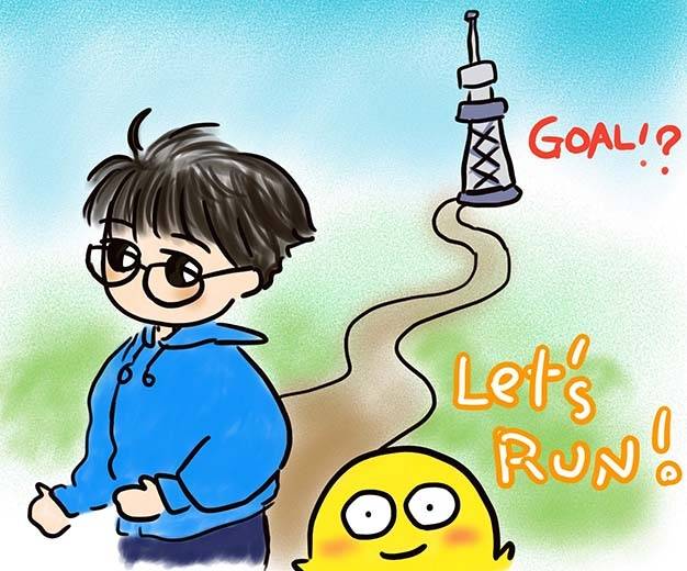 だんだんと息があがってくるのですが、地面をみることもなく、スカイツリーに向かって走っていると、頑張って走れそうな感じがします。