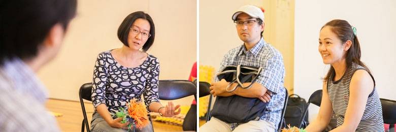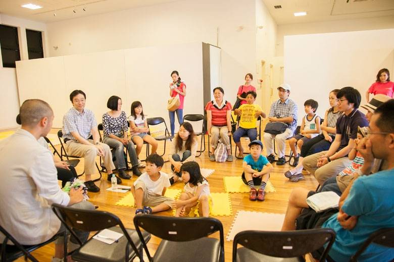 絵本を読み終わった後、前半は大人と子供のチームに分かれ、絵本を読んで思ったこと、疑問に思ったことを、それぞれ自由に話します。ルールは自分が話したい時は、手を挙げること。それ以外はどんなことを発言してもいいのです。