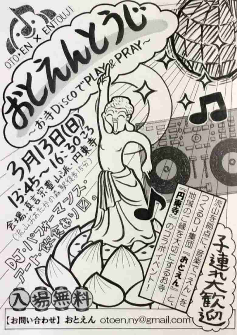 流山を中心に活動されているおとえんさんのコラボ企画、お寺でディスコのイベントです。