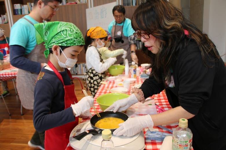 煎り卵は、先生と一緒に作ります。