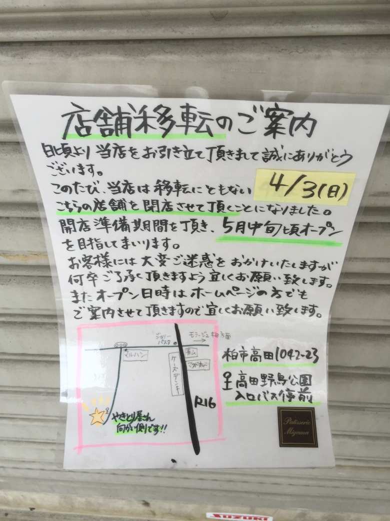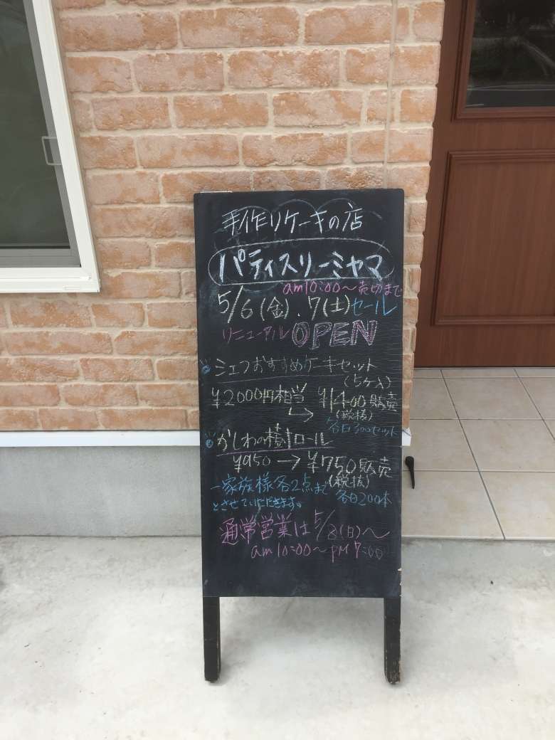 柏駅方面から柏の葉キャンパス方面へ抜け道を走っているときにふと見覚えのある単語の書いてある看板が目に入りました。気になって車を止めてよく見たところ「パティスリーミヤマ」の文字を確認。