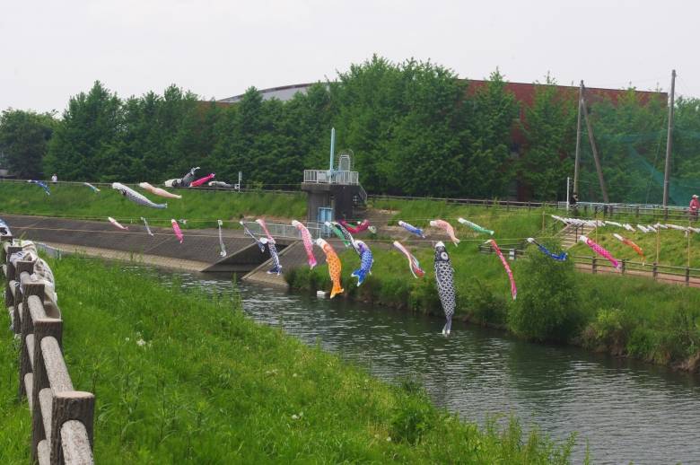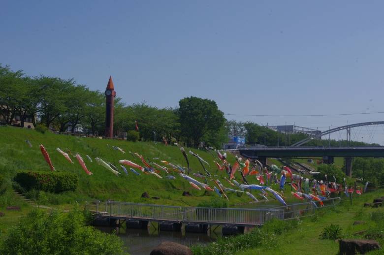 残念ながら坂川のこいのぼりは5月7日迄で展示が終わってしまいましたが、流山市と野田市の市境になる利根運河沿いにある運河水辺公園では5月29日までこいのぼり展示しています。