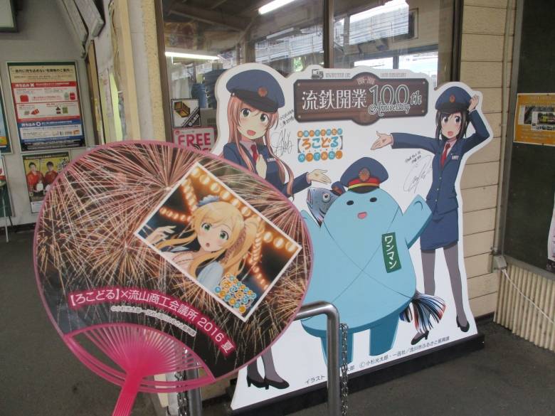 流鉄 流山駅に到着すると、流山をモデルにした架空の町“流川”を舞台にしたアニメ「普通の女子高生が【ろこどる】やってみた。」の特大パネルがお出迎えしてくれ、女子高生のパネルに目を奪われつつも、忘れずにスタンプを押しました。