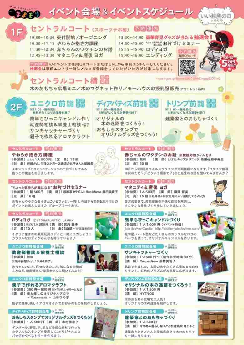 10時から16時まで、1Fセントラルコート(スポーツデポ前)のメインステージを中心に、2Fブリッジも使って、妊婦さんから小さな赤ちゃん連れのパパママ、小さなお子さんやお兄ちゃんお姉ちゃんまで楽しめるイベントが沢山ありますよ~♪