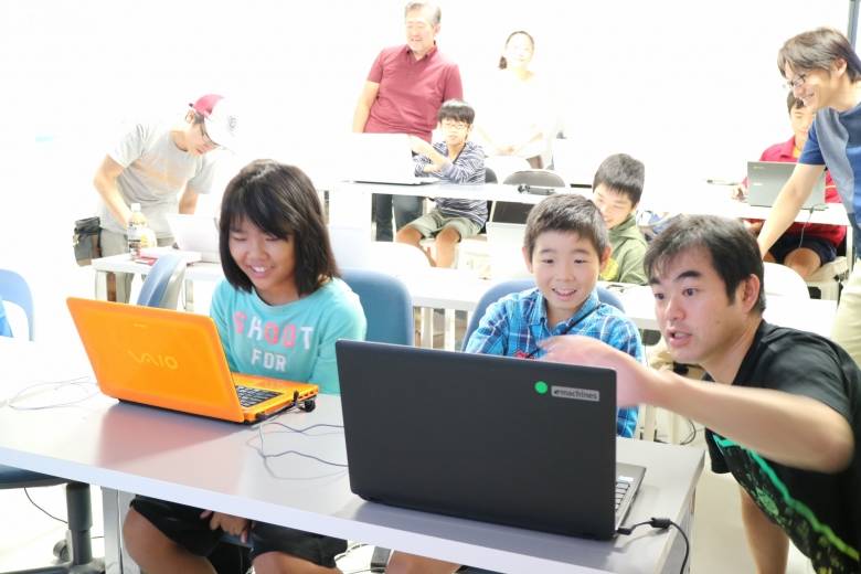 「コーダー道場」では、大人が先生として教えるのではなく、大人はメンターとして参加し、プログラミングを学ぶ子どもたちのことをニンジャと呼び、一緒に学び合います。
