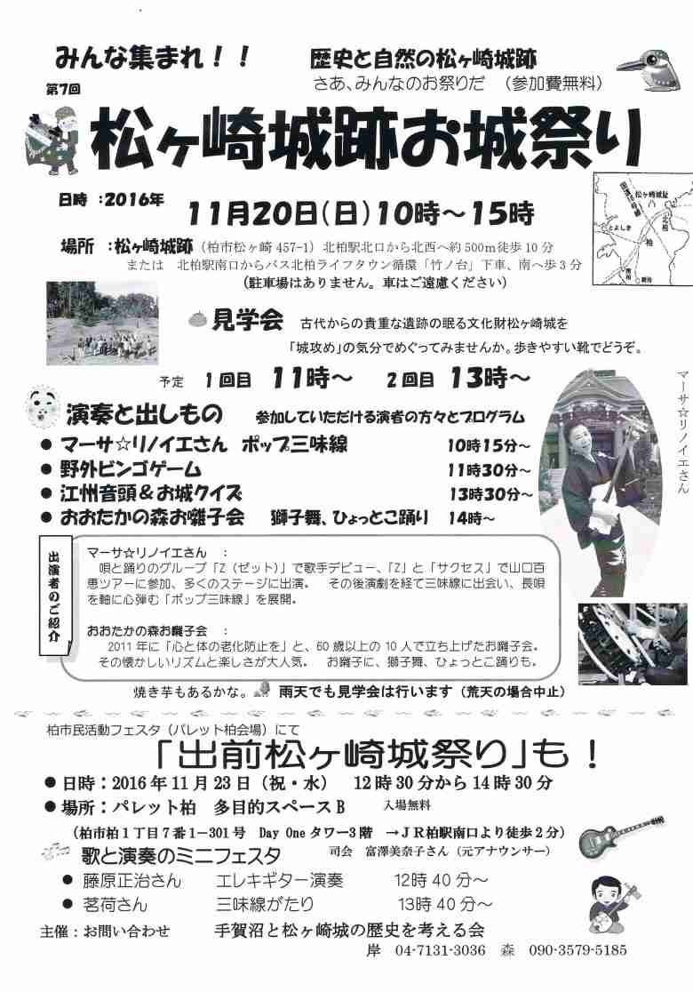 11月23日(祝)にはパレット柏で出前松ヶ崎城祭りも開催されるようです。
