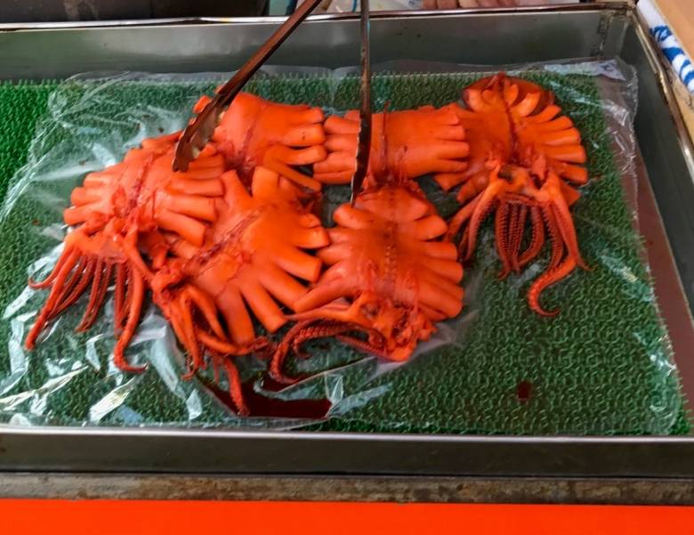 桜並木の一画では、カキ氷やリンゴ飴などの屋台も並んでおり、その中でも、茨城と栃木の屋台でしか見られない「煮イカ」が、目を引いていました。