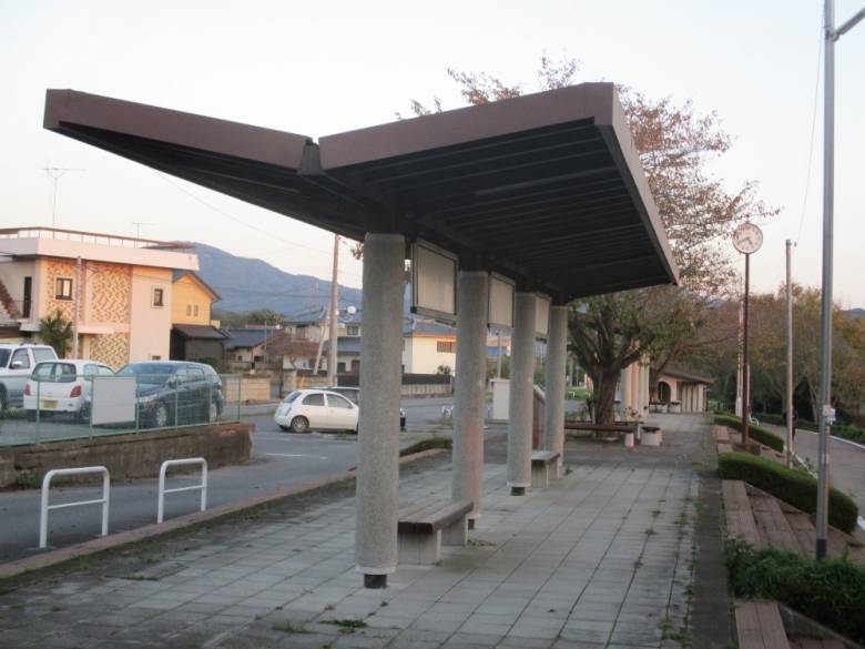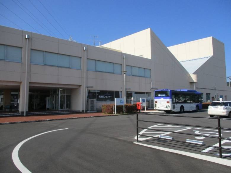 筑波山口のバスターミナルは、廃線となった筑波鉄道の跡地付近にあります。