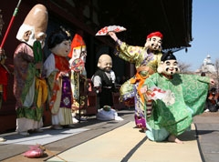 浅草寺の豆まきは、「観音さまの前には鬼はいないこと」にちなみ「鬼は外」とは言わず、「千秋万歳福は内」と発声するのがならわし。