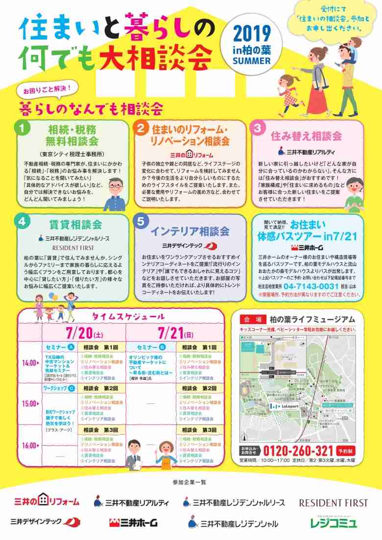 ライフスタイルの変化」、「おうちの住み替え」、「お部屋のインテリア」など皆さまが抱える様々な「お悩み」・「疑問」に三井不動産グループがお答えします!さらに!!セミナー・相談会にご参加いただいた方には「ららぽーと・アルパーク」共通の「お買い物・食事券1000円分」がもらえる特典も!この機会にぜひご参加ください!!