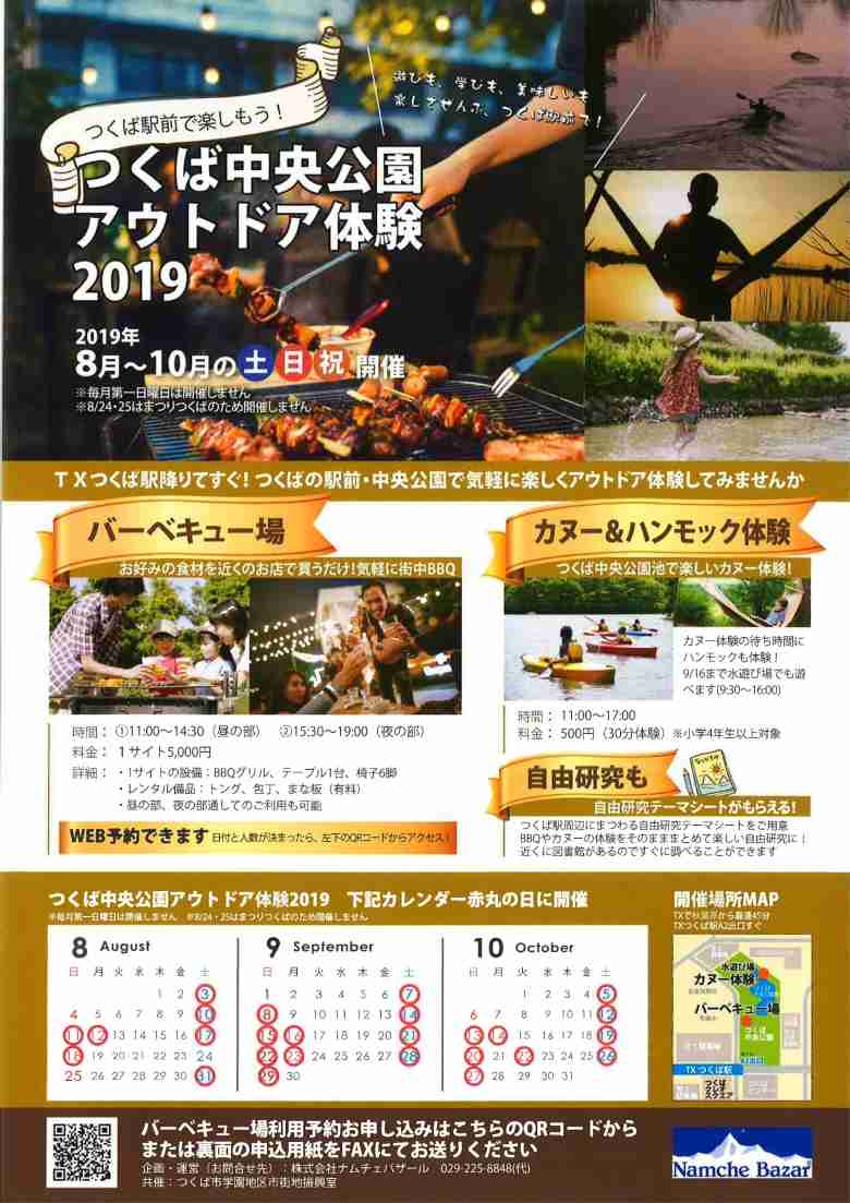 中央公園で手ぶらでバーベキュー。食材を周辺のお店で買うだけで、気軽に街なかバーベキューが楽しめます!食材はつくば駅前周辺の商業施設などでお買い求め頂けます。
