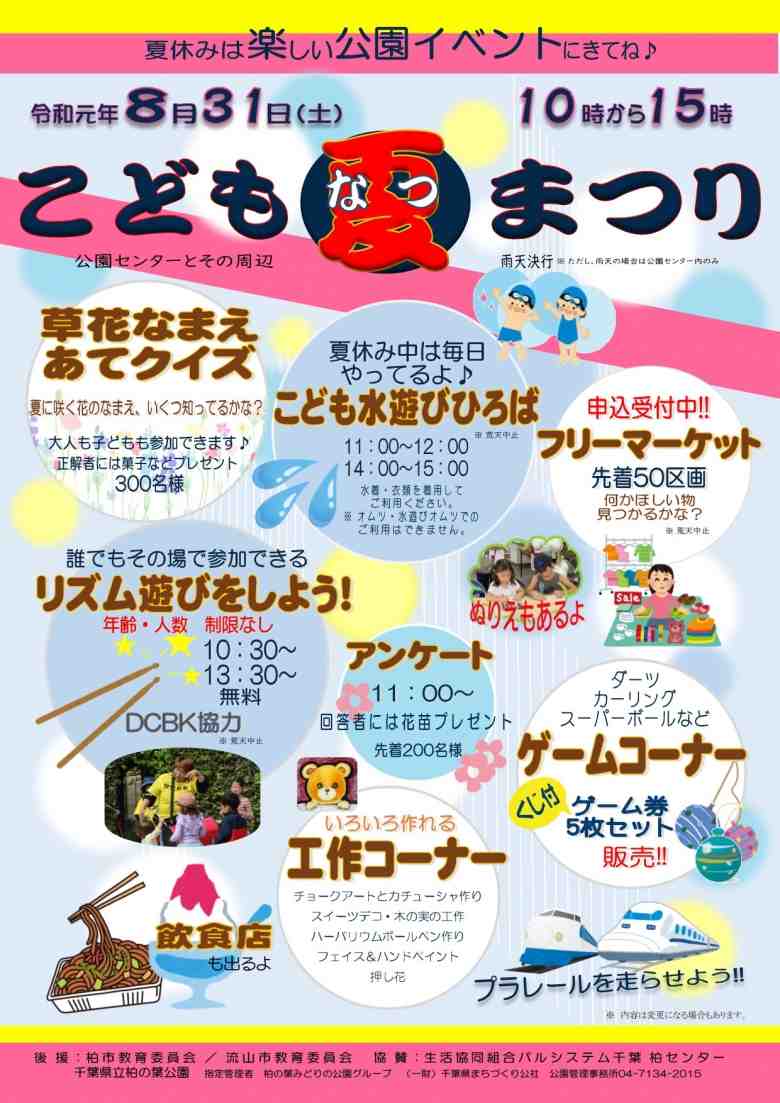 夏休み最後は柏の葉公園で思い出を作ろう!今年も「こども夏まつり」を開催します!工作コーナーやゲームコーナー、フリーマーケットなども実施します!家族や友達とぜひお越しください!
