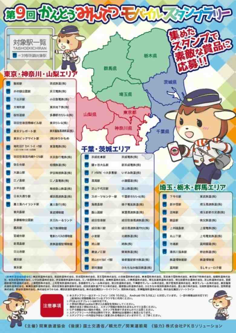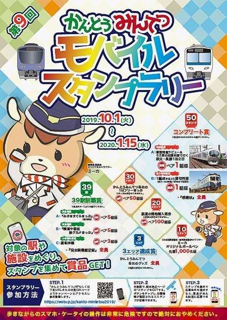 第9回 かんとうみんてつモバイルスタンプラリーを2019年10月1日から2020年1月15日まで開催関東39駅およびその他10駅、参加登録時に獲得できる1つを加えて、全50スタンプを獲得するスタンプラリー集めたスタンプ数に応じて、素敵な商品に応募できます!!