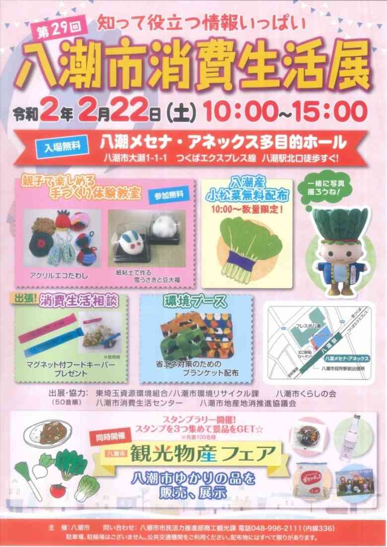 八潮農産物・八潮ブランド認定品、特産品推奨品等の観光資源に繋がる商品・製品の展示販売を行います。当日は、スタンプラリーで景品をゲットしたり、もちまき大会など楽しい催し物がたくさんありますご家族・お友達と是非ご参加してみては?消費生活展も同時開催!