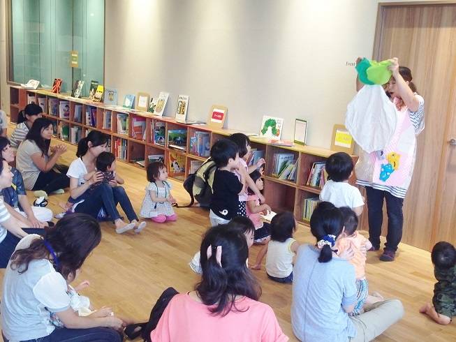 柏の葉では伝統ある保育園「ひかり隣保館保育園」の先生が出張して、絵本の読み聞かせ、手遊び、エプロンシアターやパネルシアターなど、楽しいプログラムをたくさんやってくれます。