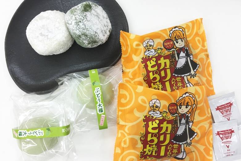 竹隆庵岡埜は老舗というだけあって、斬新なカリーどら焼きだけではなくおいしそうな和菓子がいっぱい。この日は『カリーどら焼き』の他に、一番人気の『こごめ大福』と期間・店舗限定の『ジャイアンツぶどう餅』を購入しました。