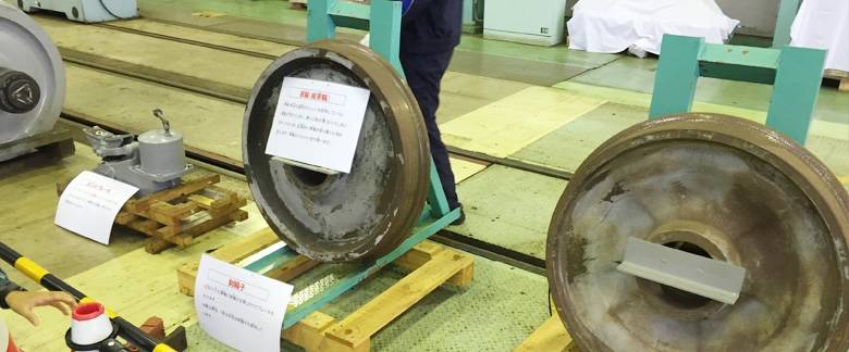 車輪は使用していくうちに荒れてきて乗り心地が悪くなるので、定期的に削り、乗り心地を良くする工夫がされているのだそう。