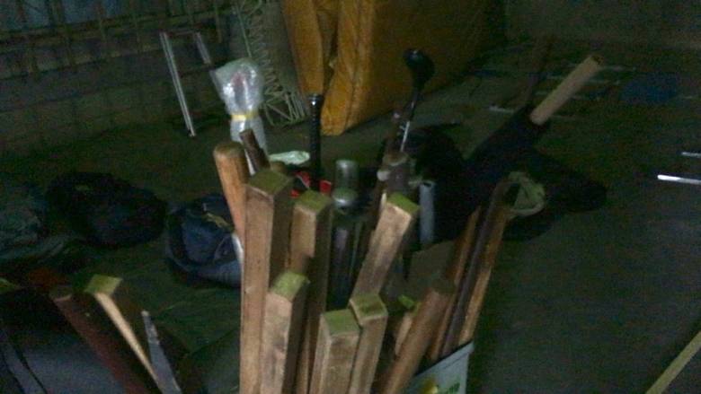 物騒な角材やバット、これを振り回し、、、
