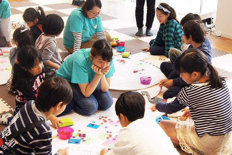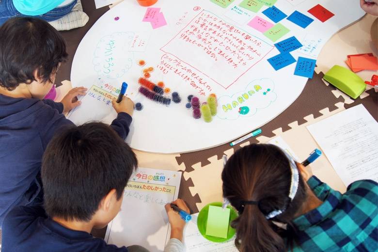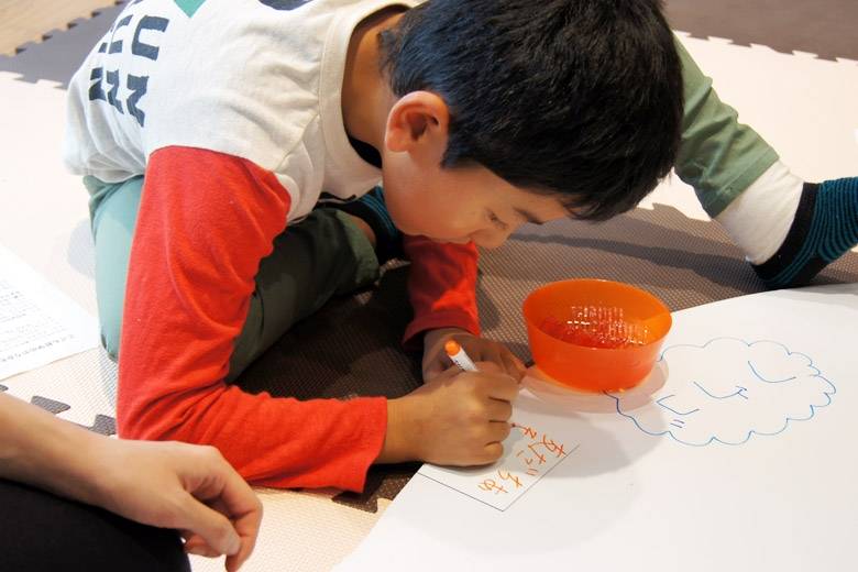 ワークショップは、考えることや他の子どもと話すことが楽しくなる、ある“しかけ”を使って進められました。