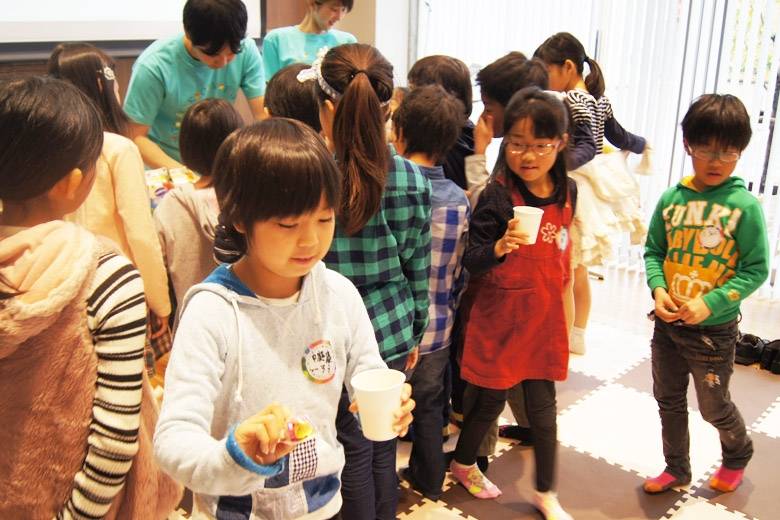 ヒーローについて意見を出し合ったところで、いったん休憩。チョコレートとジュースをもらってパワーアップタイムです!
