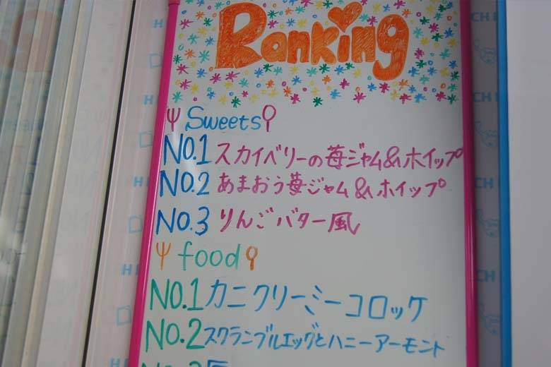 店内にはスイーツ系、お惣菜系の人気商品が分かるようにランキングが表示されています。