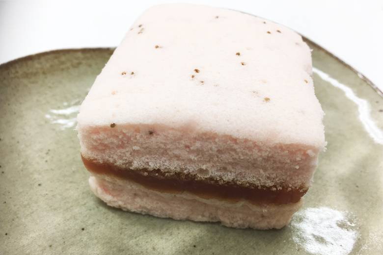 豆乳でつくられたスポンジはふんわりしっとり。間には苺餡が入っています。
