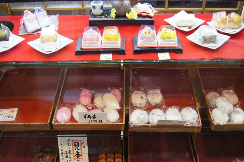 お惣菜なども販売しており、ショーケースの中にはお団子や大福などの他におにぎりや巻きずしなど、いろんなメニューがズラッと並んでいます。