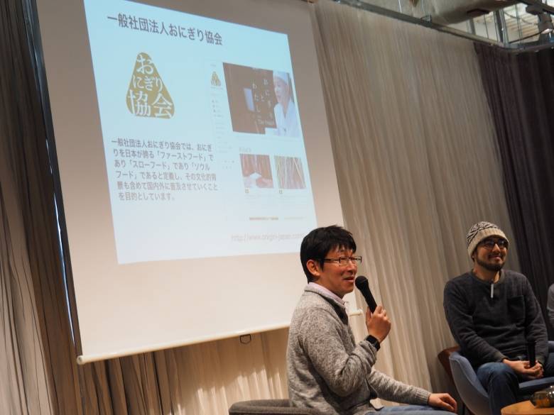 続いての講座は、浅草で東京で最も古いおにぎり専門店「おにぎり浅草宿六」の三代目三浦洋介氏と、おいでよTXの運営・編集長でもあり、一般社団法人おにぎり協会の代表理事中村祐介氏のトークショー。