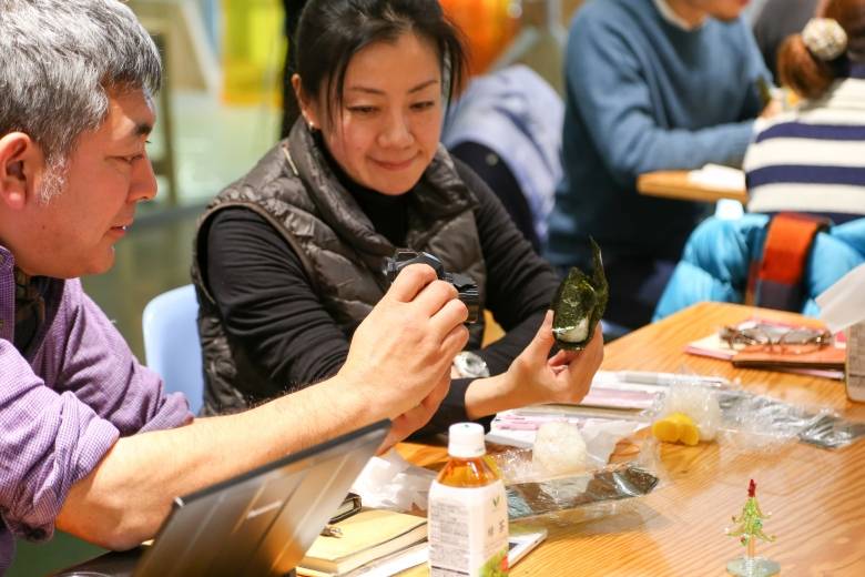ノリの片面がピンとたったスタイル。おにぎりをきっかけに写真撮影やコミュニケーションも。