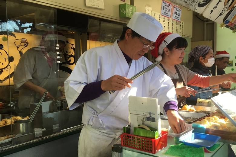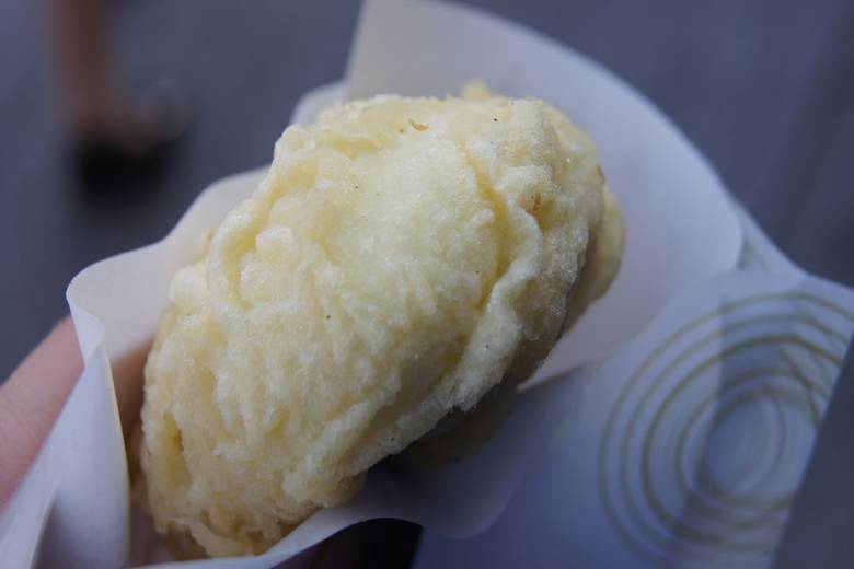 浅草寺からすぐの場所にあるあげまんじゅう実演販売のお店「浅草九重」。