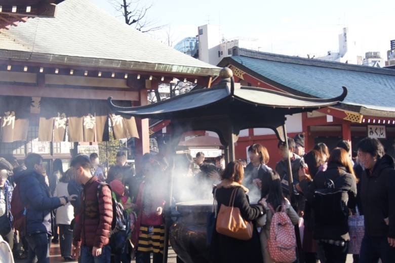 浅草寺では、受験シーズン真っ盛りの学生らしき人達が常香炉の煙を一生懸命頭にかけていました。
