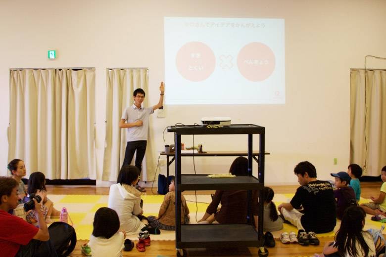 7/19(日)・20(月・祝)に柏の葉キャンパスで開催された「マナビーヤ!フェスタ」では、その一部が体験できるワークショップ“「勉強嫌い」を「学び好き」に。ワクワク学ぶ方法を親子で身につけよう!”が行われました。先生はa.school代表取締役/校長の岩田拓真さん。