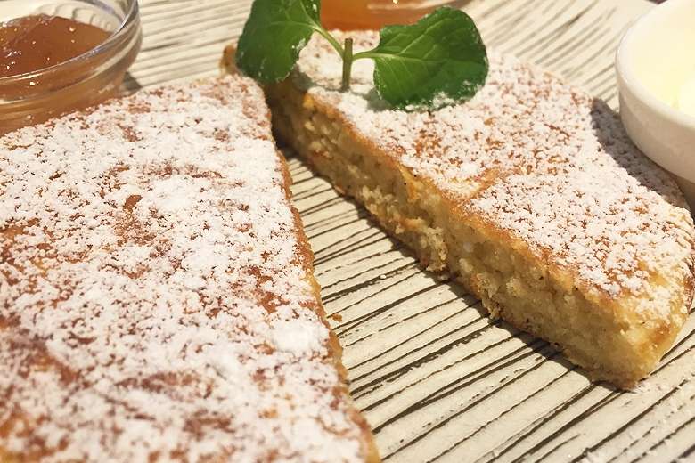 しっとりキメ細かい生地で表面にはシュガーもたっぷり。ナイフを入れるとふわーっと紅茶のいい香りがしてきます。