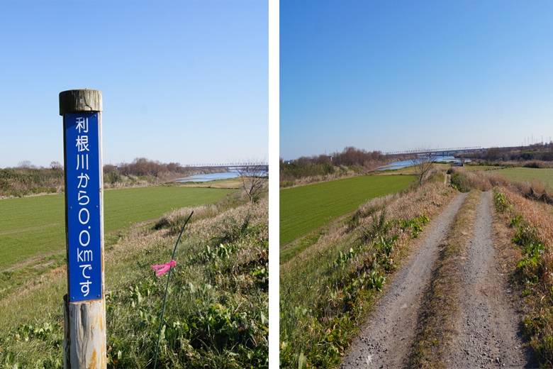 つぎの予定まで少し時間があったので、牛舎のすぐそばにある利根川と鬼怒川の合流地点、通称「剣先」へ。