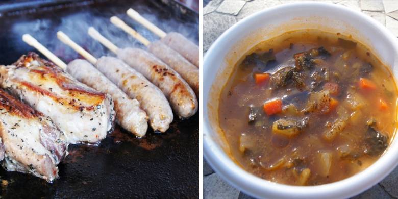 自家製サルシッチャ(腸詰め)やスペアリブ香草焼き、地元で採れた野菜で作られたミネストローネなど、メルカートの利用だけでも美味しい食事をテラス席で楽しめます。