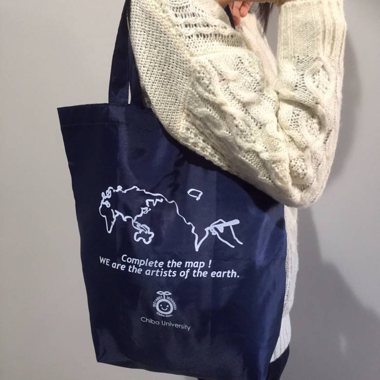 千葉大学環境ISO学生委員会の発案により、2006年度から大学生協におけるレジ袋が有料化されました。年間で110万人が利用する生協で、レジ袋の購入は7,000枚程度。購入率にすると0.6%と言われています。今回販売されるグッズはレジ袋有料化に伴う環境基金を活用したもの。