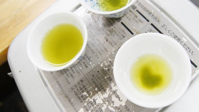 残ったお茶が……。理事長の心遣いが「熱いハート」となって表れています。