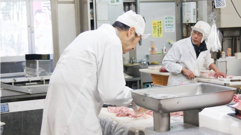 仕入れてきたばかりの肉をその場で裁断している様子も見られます。お子さんにも興味を持ってもらえるかもしれませんね。(「柏食肉センター」)