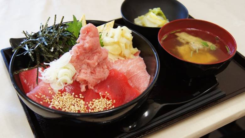 柏市は海に隣接していないのですが、場内に水産棟があるため新鮮な魚が手に入ります。食堂街にある「美香」は、そこで仕入れた鮪(まぐろ)を使った鮪料理専門の店。これは楽しみです!