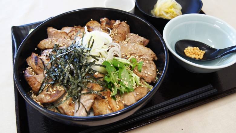 次は、1度で3つの味わいが楽しめる「鮪炙りDON」。まずはそのままひとくち……。一瞬、牛肉を食べているのではないかと錯覚してしまうようなボリュームと風味。肉厚でジューシーな食感は、是非一度体感して欲しい!
