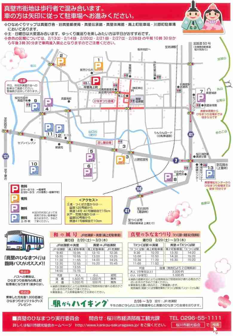 経路:TXつくば駅⇔真壁(ひなまつり会場内の高上町駐車場)